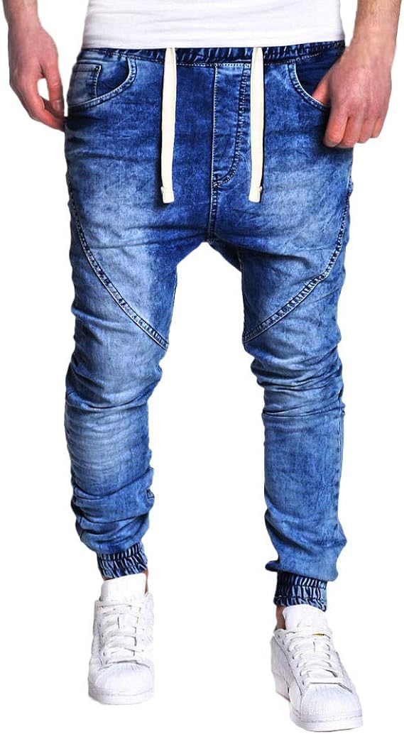 Geili Men S Fashion Jeans Boys Elastic Waistband Skinny Jeans Running Trousers Elastic Long Jeans Trousers Autumn Slim Fit Stretch Denim Trousers Vintage Wash Hip Hop Work Trousers Amazon De Bekleidung