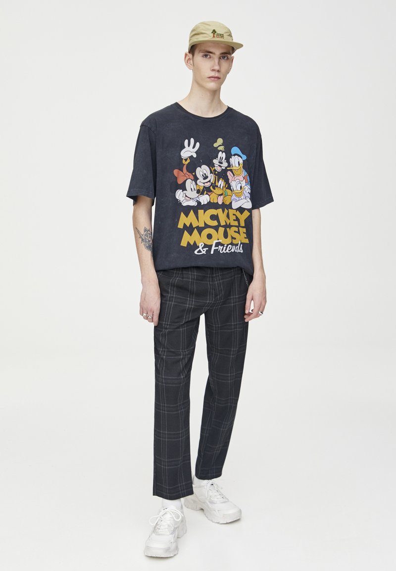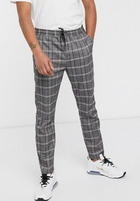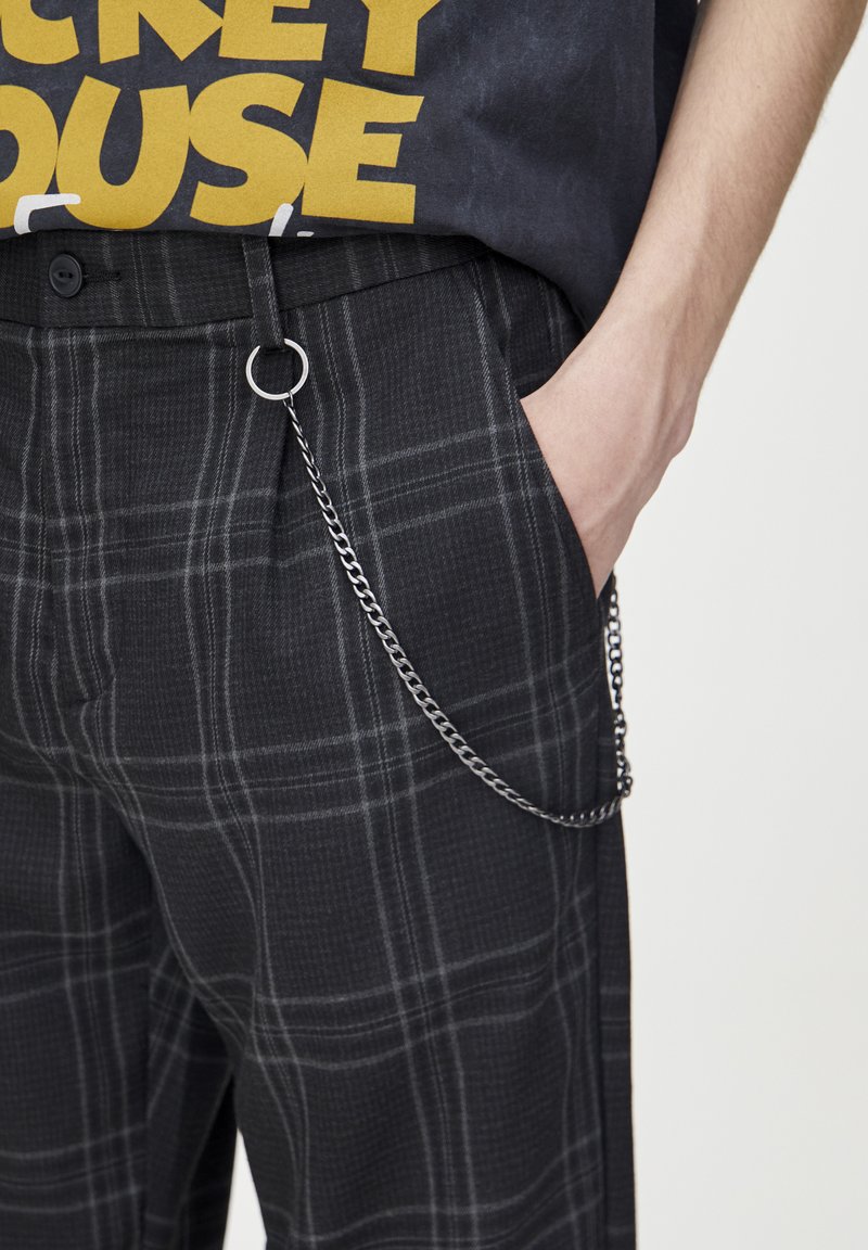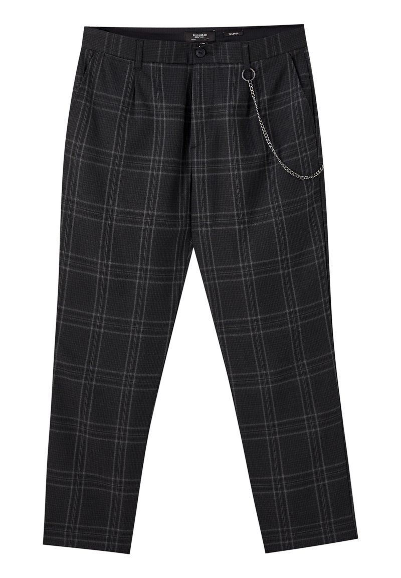 Pull Bear Dunkelgraue Karierte Hose Eng Geschnitten Stoffhose Black Schwarz Zalando At