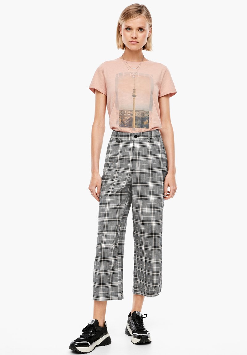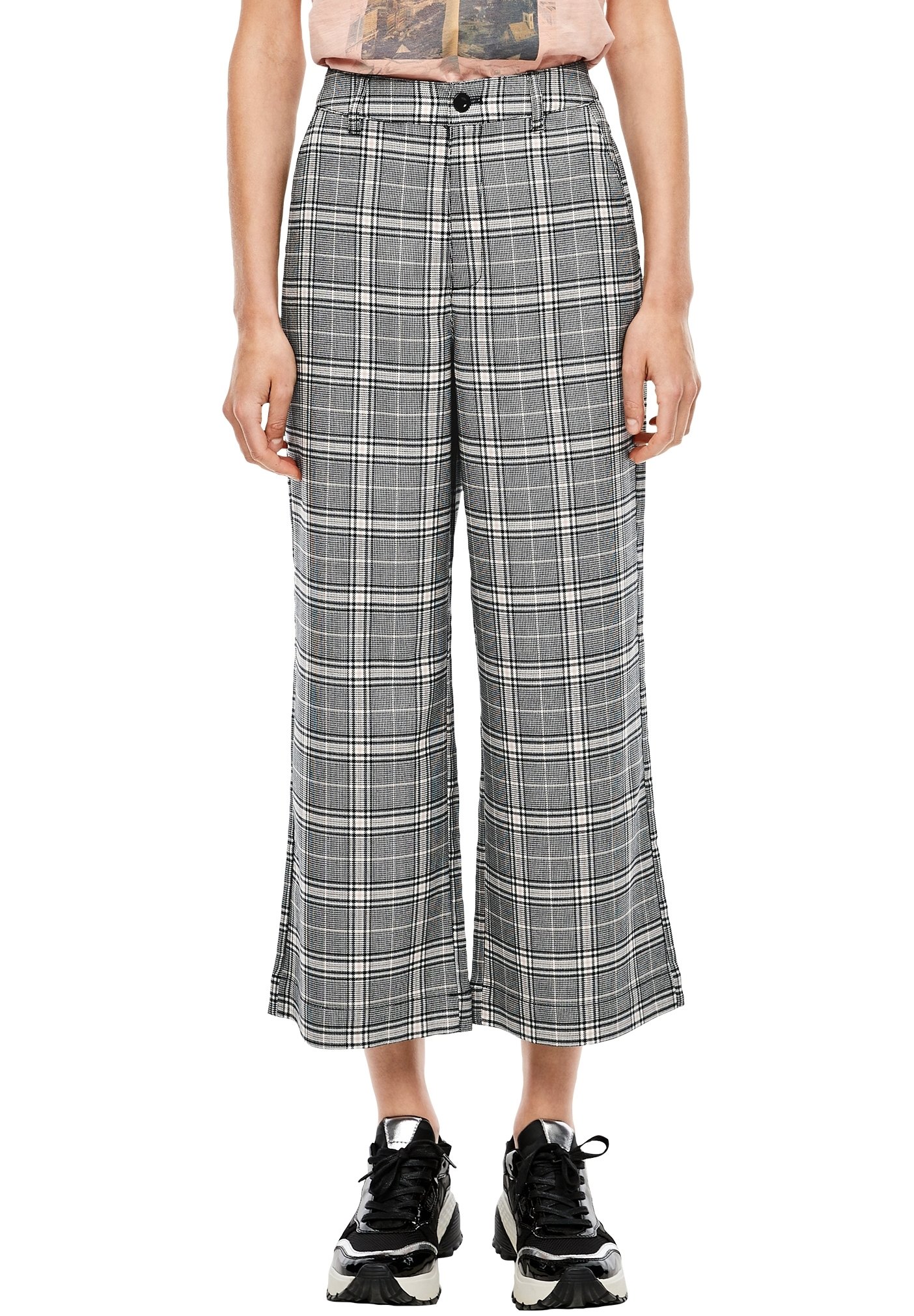 Q S Designed By Karierte Culotte Stoffhose Black Check Schwarz Zalando De