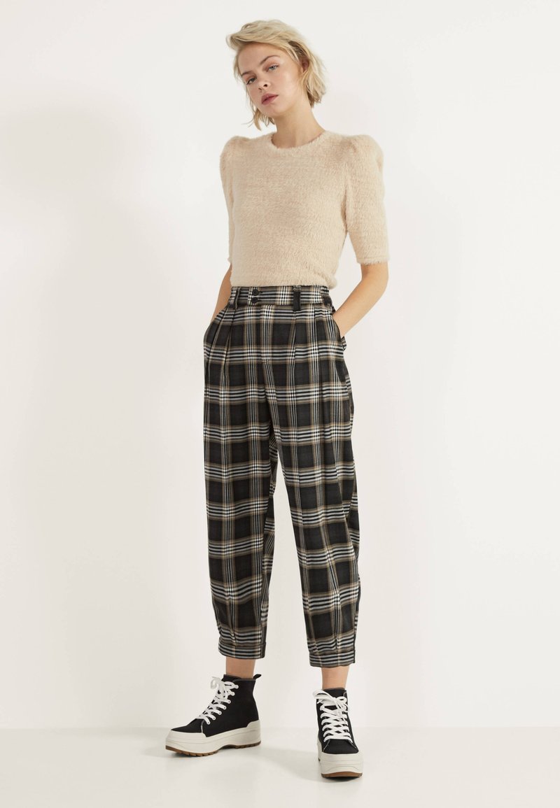 Bershka KARIERTE Stoffhose black für 19,99 € (3100) versandkostenfrei bei Zalando bestellen. Zalando Deutschland Willkommen auf dem offiziellen Account von zalandode!. Influencerin Masha zeigt uns einen coolen Businesslook für den Herbst karierter Blazer und karrierte Hose von Stella Nova, karierte Stoffhose, Rollkragenshirt von NAKD, goldene Ohrringe von Emporio Armani Alle Artikel sind bei Zalando erhältlich.