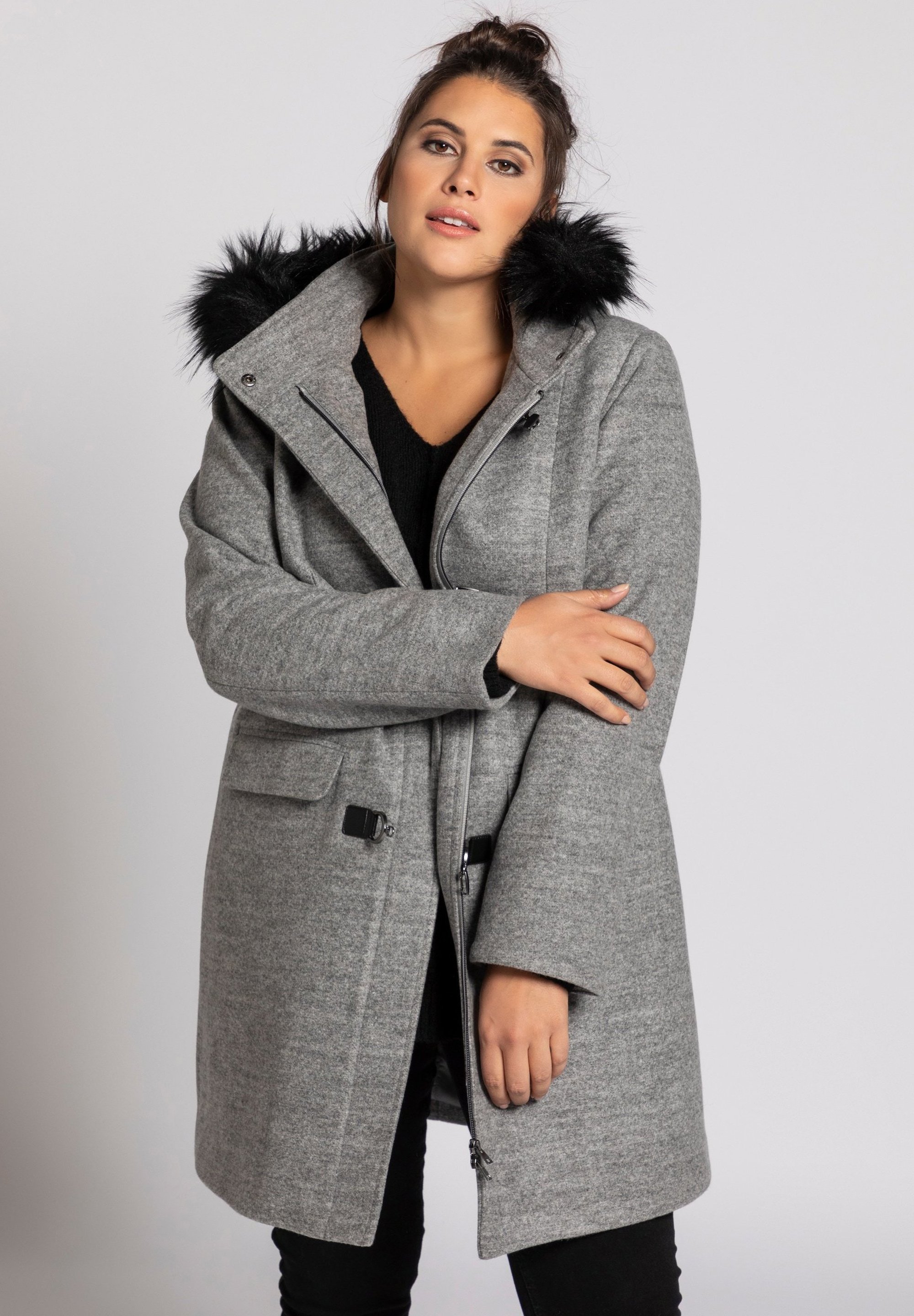 Ulla Popken Wollmantel Klassischer Mantel Grijs Melee Grau Meliert Zalando De
