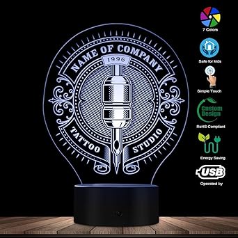 Ihr Benutzerdefinierter Name Tattoo Studio 3d Optische Tauschung Lampe Tattoo Maschine Personalisierte Tattoo Salon Shop Name Tischleuchte Usb Licht Amazon De Beleuchtung