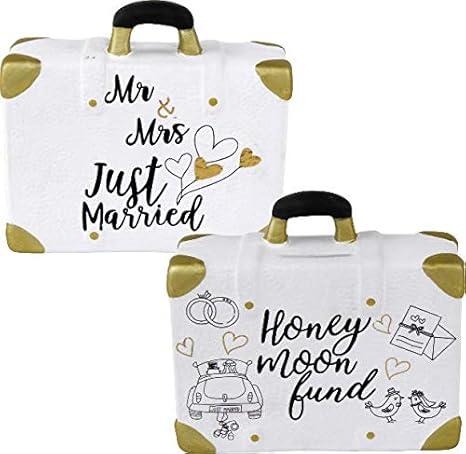 Spardose Reise Koffer Flitterwochen Just Married Hochzeit Spar Buchse Ehe Braut Paar Brautigam Vermahlung Trauung Liebe Geld Geschenk Amazon De Kuche Haushalt