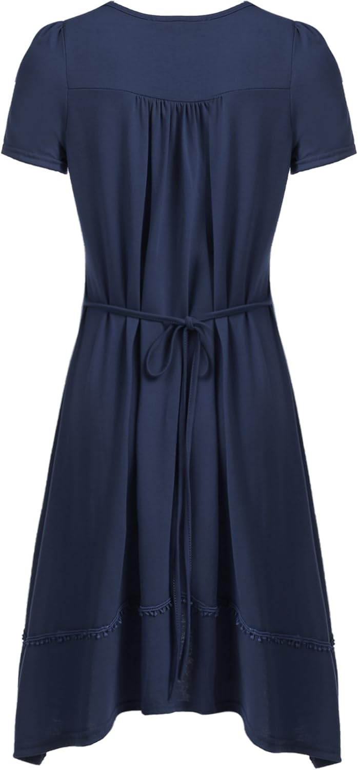 Tomwell Damen Dress Kleid Sommerkleid Kleider V Ausschnitt Strandkleider Einfarbig A Linie Kleid Boho Knielang Kleid Kurzarm Patchwork Freizeitkleid Kleider Freizeit