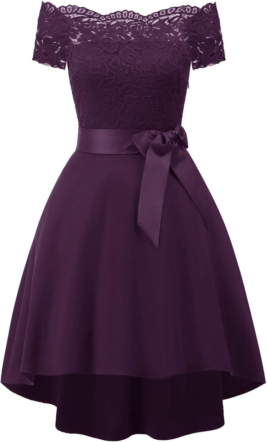 Cocktail Laorchid Vintage Damen Kleid Spitzenkleid Off Schulter Cocktail Knielang A Linie Bekleidung