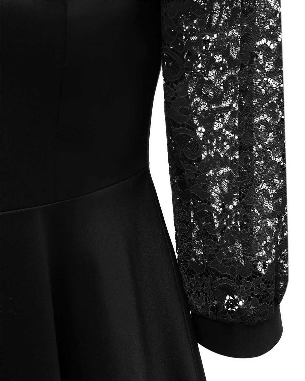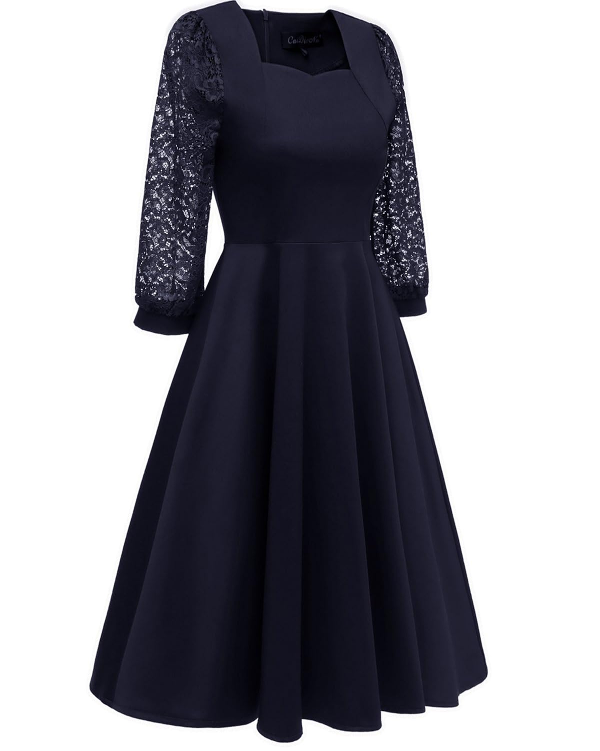Laorchid Vintage Damen Kleid Spitzenkleid Cocktail A Linie Knielang Trompetenarmel