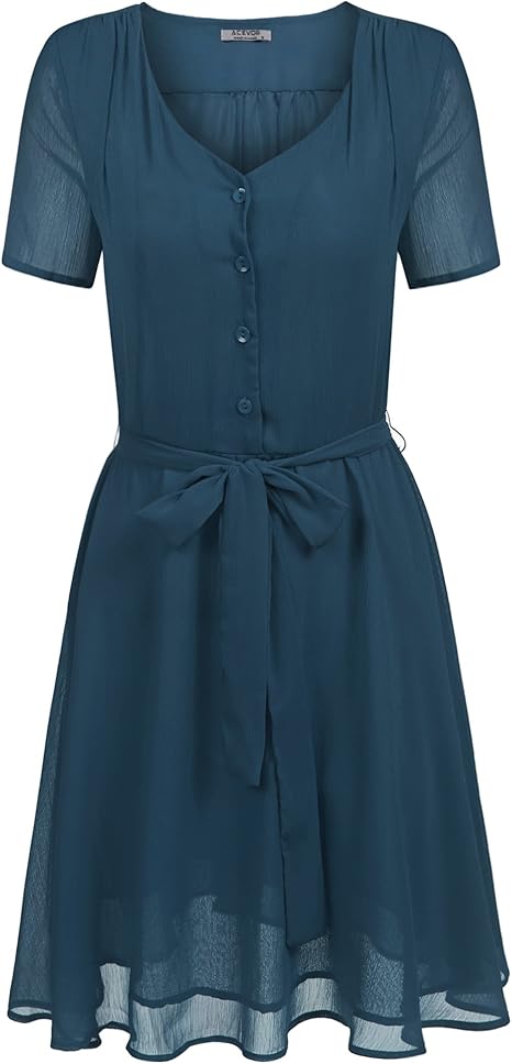 Damen Zeagoo Damen Elegant Chiffonkleid Sommerkleid Partykleid Hochzeit Festliches Kleid A Linie Kurzarm Knielang Bekleidung Luxdental Si