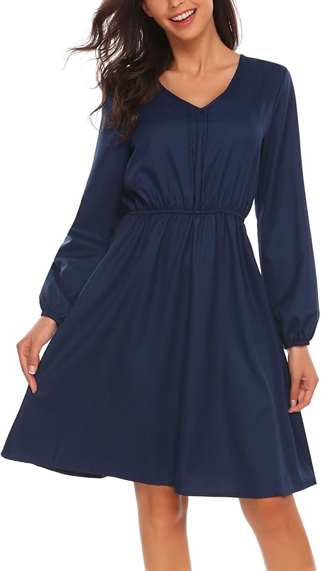 Marine B M Fenverk Langarm Sommerkleid Casual Kleid A Linie Minikleid Elegant Kleider Knielang Strandkleider Lose Shirtkleid Auto Motorrad Kindersitze