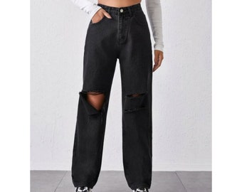 High Waist Jeans Schwarz Locher