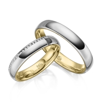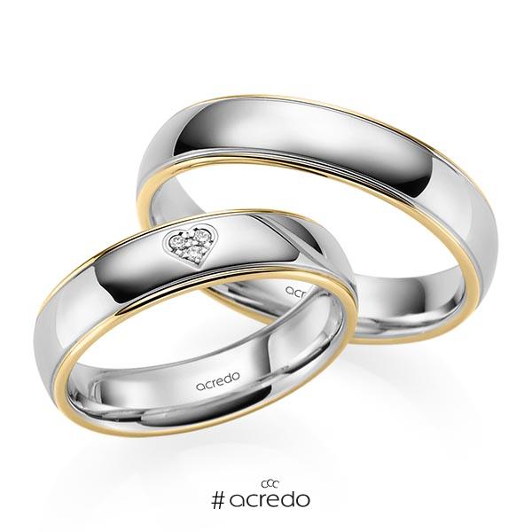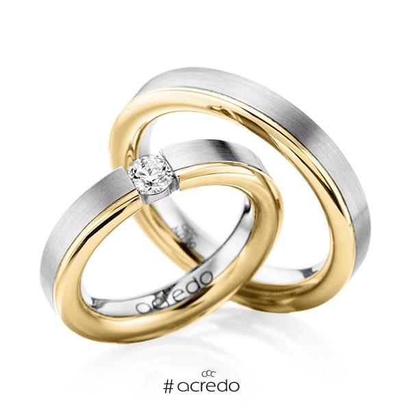 Paar Trauringe/Eheringe von acredo in Gelbgold 585/ Weißgold 585/ Oberfläche poliert mit zus 0,64 ct Brillant tw, si Trauringe/Eheringe einzigartig wie die Liebe finden Sie in großer Auswahl bei Ihrem 123goldPartner ganz in Ihrer Nähe Gestalten Sie sich ganz nach Ihren Wünschen Ihr TrauringPaar nach Farbe, Material, Form, Oberfläche und Steinbesatz. Jetzt stöbern, Preise vergleichen und günstig online kaufen!. Ein Paar Trauringe Eheringe Gold 585 Eismatt Bicolor Weiß/Gelb Damenring 4mm, Herrenring 5mm ArtikelNr ab 649,00 € / Paar *.