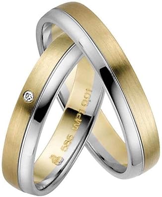 Paar Bicolor Trauringe Eheringe In Gelbgold 585 Edelstahl Mit Zus 0 08 Ct Prinzess Diamant Tw Si Von 123gold