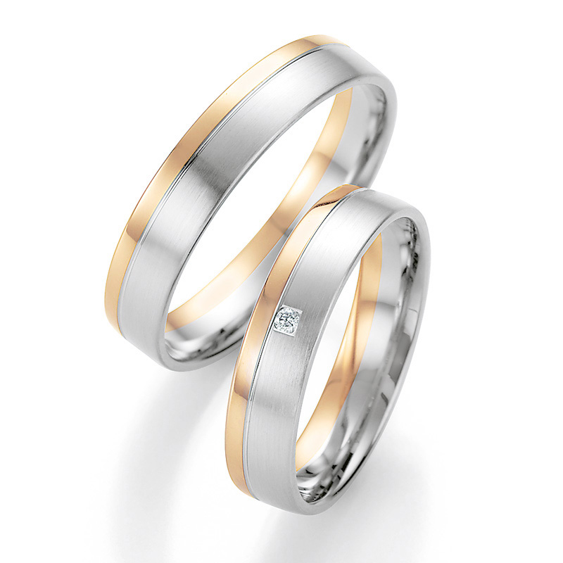 Bicolor 585 Gold Eheringe Trauringe Breuning 48/059 1 Paar Trauringe von Breuning aus der Kollektion Design 585 Gelbgold und Weißgold Breite 7 mm Brillanten 0,21 carat wsi Gesamtgewicht Sie erhalten zu jedem Trauringpaar ein Trauringetui und ein Poliertuch. 585 Bicolor Trauringe Eheringe Hochzeitsringe Flora mit Millgriff EUR 2440,00 Versand Schmale Hochzeitsringe Trauringe mit Millgriff aus 585 Apricot und Weissgold EUR 2769,00 Versand Ein Paar Trauringe Hochzeitsringe Gold 585 Bicolor Mit handgemachtem Zopf EUR 1492,47. Diese Ruesch Trauringe werden aus 585 Weissgold und Rotgold angefertigt Der Damenring wird mit 0,066 ct Brillanten gefasst eheringeshop Ruesch Bicolor Trauringe aus 585 Gold P.