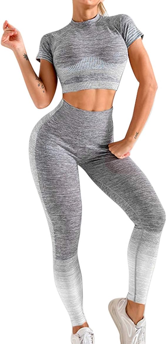 Damenmode Damen Zweiteiler Sport Anzug Kombi Set High Waist Leggings Fitness Top Training Kleidung Accessoires Sticisce Sredisce Si