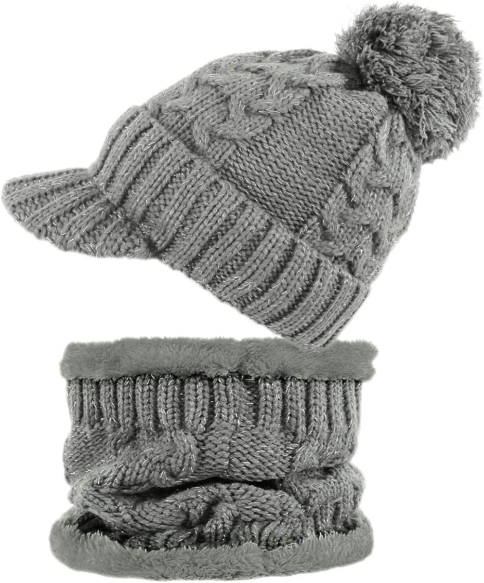 Dy Mode Damen Mutze Und Schal Kombi Set Schirmmutze Bommel Mit Innenfutter A305 Accessoires Damen