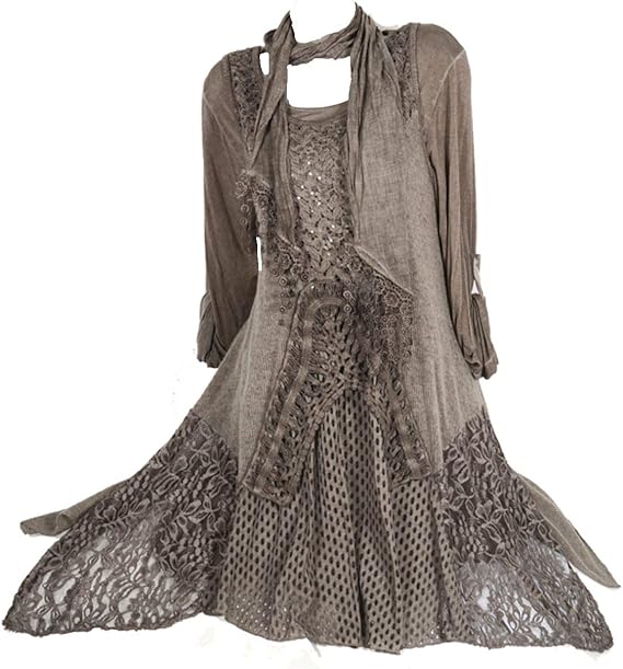 Grisodonna Style 3tlg Damen Winter Kombi Stick Kleid Assymetrisch Zipfel Long Pullover Spitze Twinset Patchwork Lagenlook Tunika Schal Unterkleid Pailletten 36 38 40 42 44 S M L Beige 36 Amazon De Bekleidung