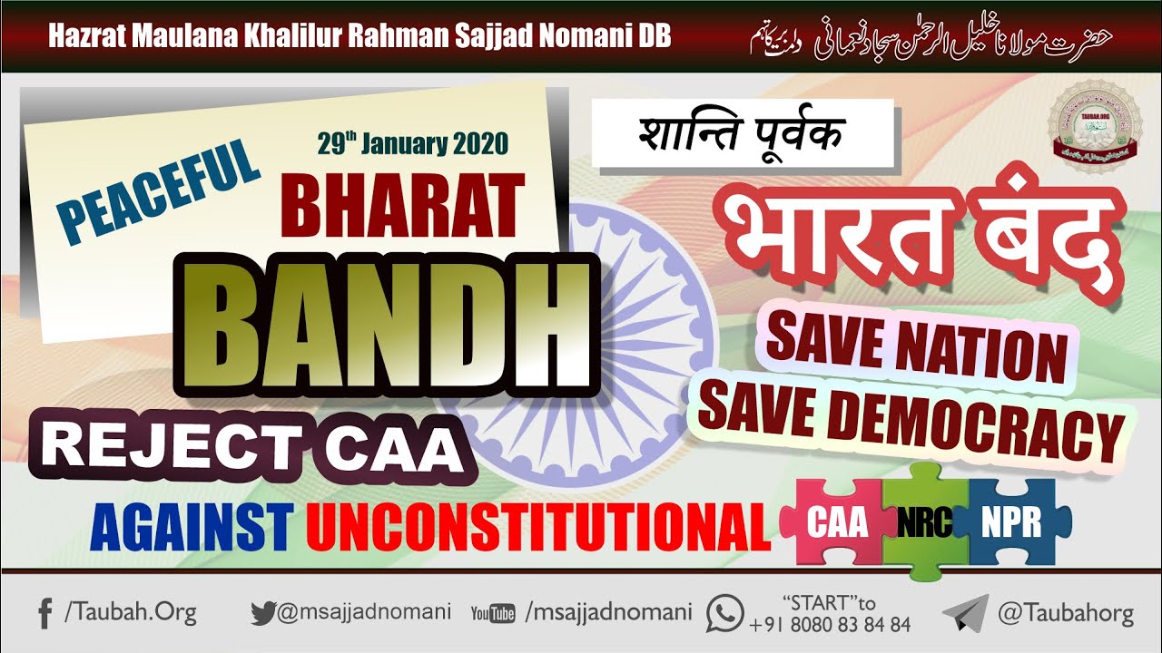 Appeal For Bharat Bandh 29th January Maulana Khalilur Rahman Sajjad Nomani Db Youtube