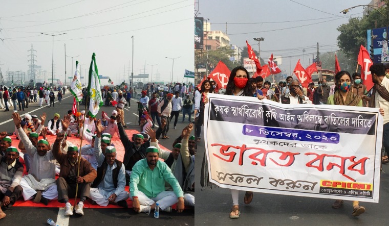 Maharashtra Swabhimani Shetkari Saghtana staged 'Bharat Bandh Rail Roko' protest and briefly stopped a train today in Malkapur of Buldhana dist They were later removed from the tracks by Police & detained Farmer Unions have called #BharatBandh today, over Centre's #FarmLaws pictwittercom/syREnd7Iez — ANI (@ANI) December 8,. Congress MLAs and MLCs protest in support of farmers, at Gandhi statue in Vidhana Soudha before going to Assembly and Council sessions, during the Bharat Bandh, in Bengaluru on December 08,. KOLKATA West Bengal’s ruling Trinamool Congress will not support the ‘Bharat Bandh’ called by farmer union leaders on December 8 although it supports their genuine issuesThis was announced by TMC MP Sudip Bandyapadhyay on Saturday Bandyapadhyay, while addressing a press conference at the Trinamool Congress Bhawan, the party headquarters in Kolkata, said that the ruling party in the.