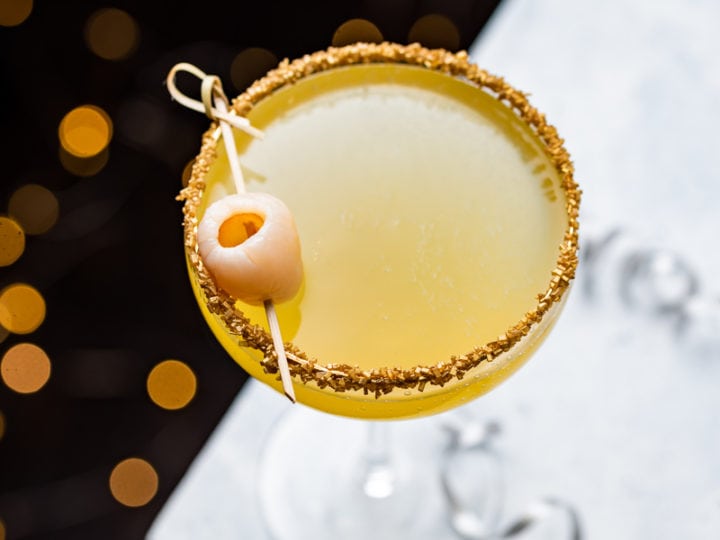 New Year S Golden Tiki Cocktail Gold Rum Lychee Champagne Cocktail