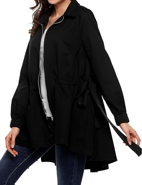 Cooshional Trenchcoat Damen Casual Kurz Sommermantel Drawstring Parka Schwarz Grun Amazon De Bekleidung