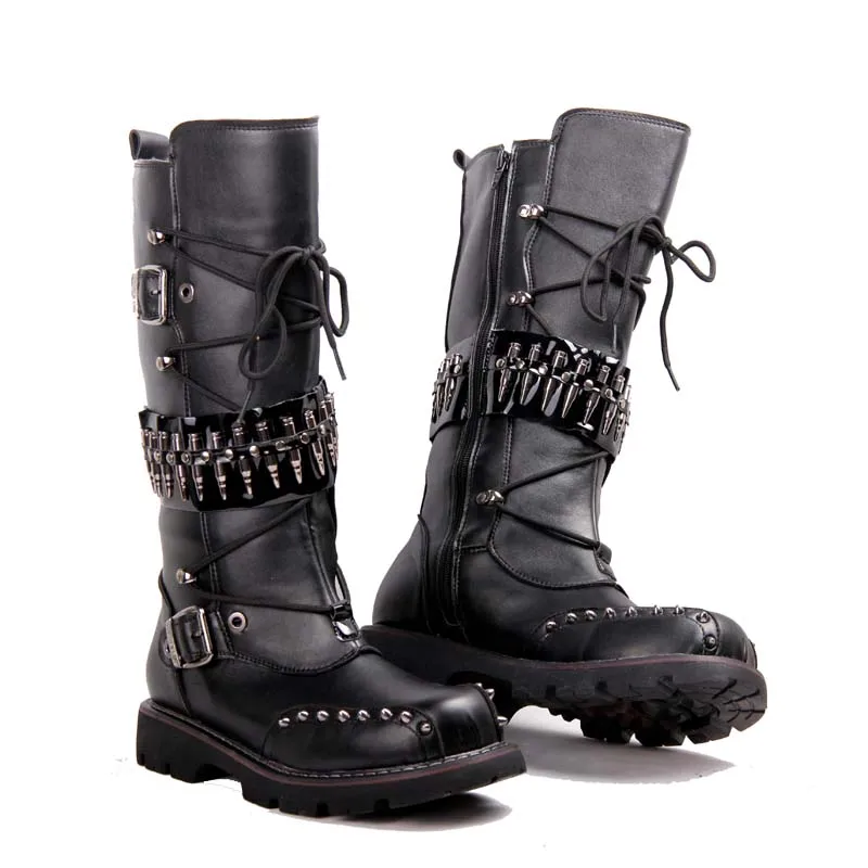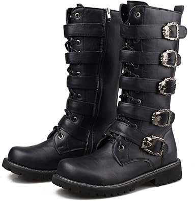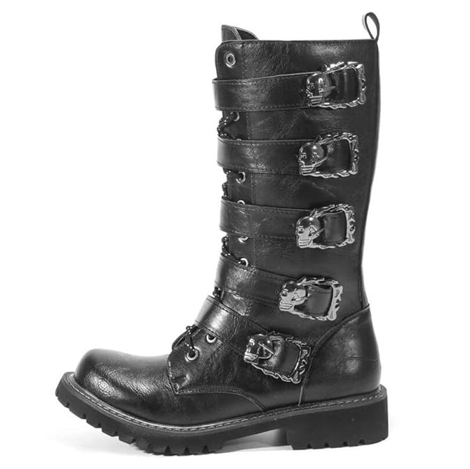 Herren Militar Kunst Kunstleder Mental Chain Hohe Stiefel Martin Stiefel Punk Design