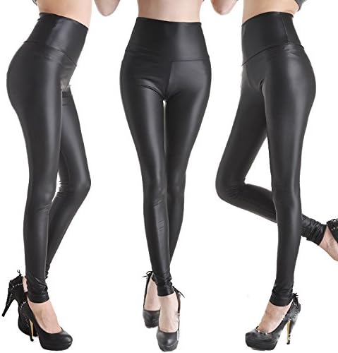 Damen Leder Optik Leggings Stretch Hose Skinny Hohe Taille Thermo Treggings Neu Fitness Clothing Accessories Sporting Goods