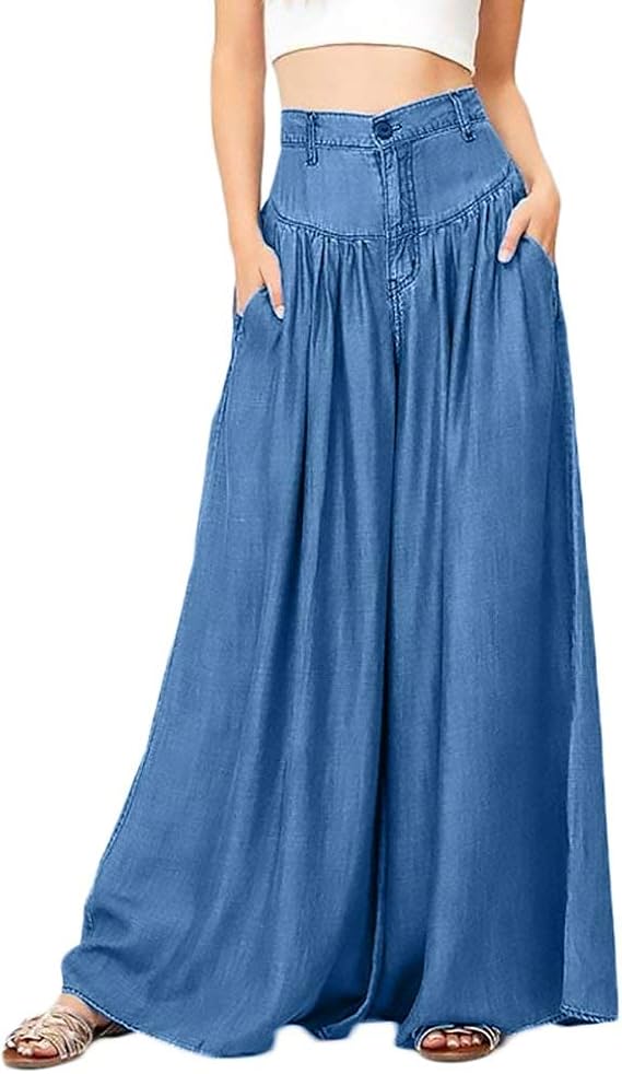 Jumpsuit Catsuit All Season Luxury Button Wide Leg Trousers With Pockets Front Button Multilayer Uni Colours Girls Comfortable Breathable Casual Long Length Tight High Waist Jeans Trousers Leisure Trousers Blue Size X Large Amazon De