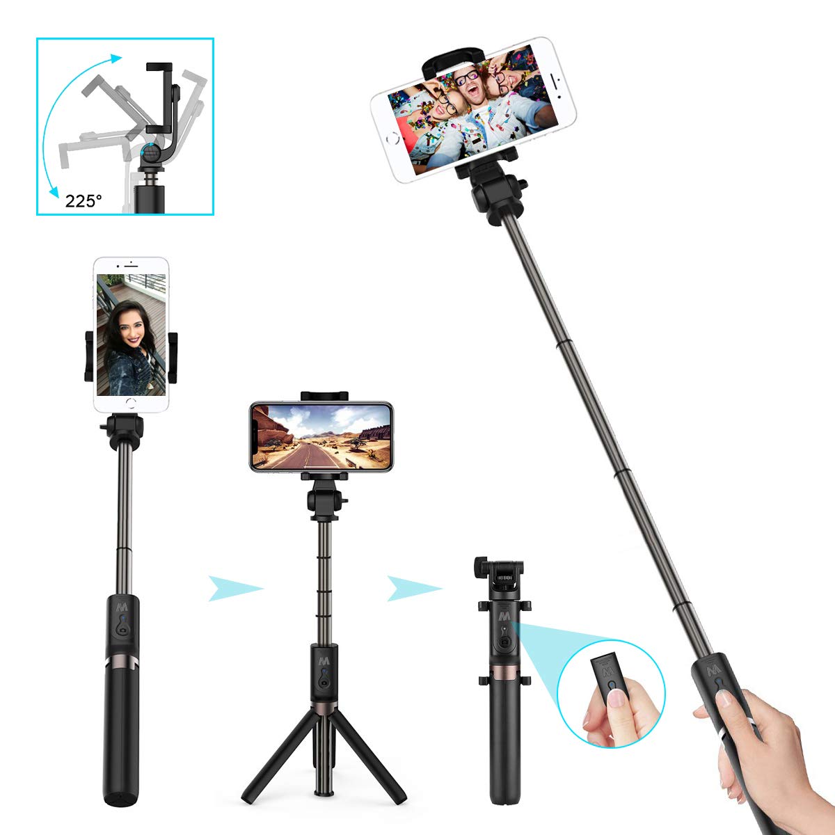 Selfie Stick, Extendable Selfie Stick Tripod with Detachable Wireless Remote and Tripod Stand Selfie Stick Compatible with All Cell Phone, Compact Size & Lightweight 42 out of 5 stars 12,014 $1799. Foneso Bluetooth Selfie Stick Handy Selfie Halter Selfie Stick mit Stativ, YOOZON Bluetooth Selfie Stange mit Integriertem Fernauslöser, Selfie Stab mit Monopod 3 in 1 Erweiterbar 360° Rotation für iphone 8/ 8 plus, iphone 7/ 7 plus, Galaxy note 8, Smartphone 356 Zoll Bildschirm (Schwarz). Meet the MPOW Selfie Stick Tripod 3 in 1, which is well as being a useful selfie stick is also a handy portrait aid, sporting a handy builtin fill light to help keep your exposures clean and pretty.