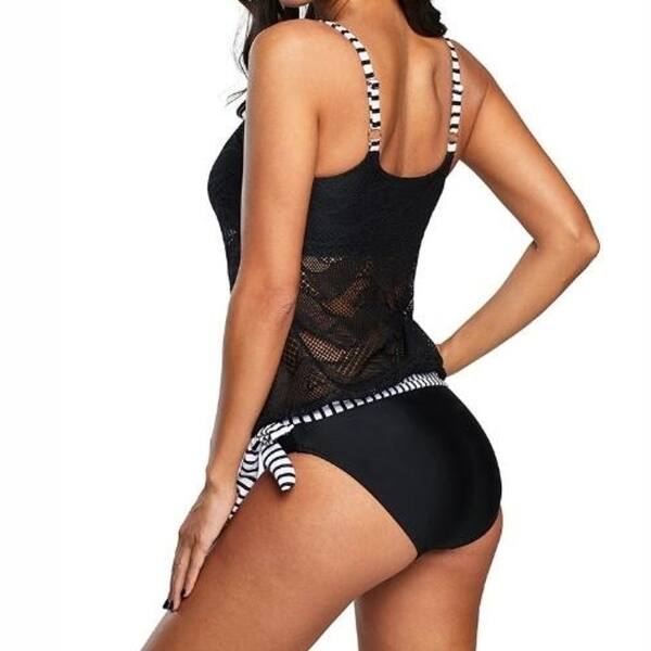 Black White Two Piece Tankini Swimsuit