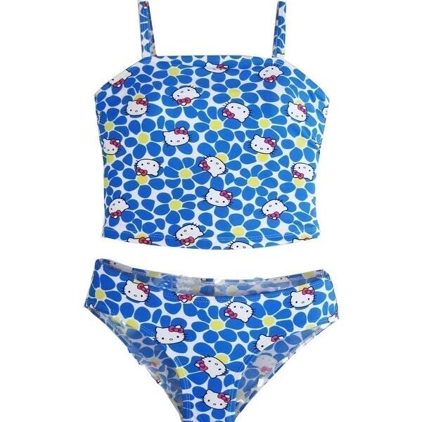 Hello Kitty Little Girls Blue White Flowers Two Piece Tankini Swimsuit 4 6x Overstock 4
