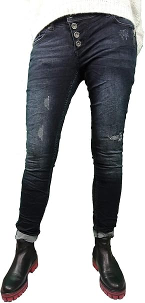Baggy Jewelly Damen Jeans Dunkle Waschung Used Look 5 Pocketstyle Jeansblau Charis Moda