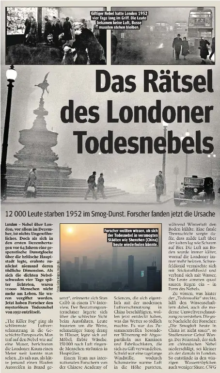 In December 1952, London experienced a catastrophe As depicted in the Netflix series The Crown (which last year aired on Chinese streaming sites) the disaster seemingly came out of nowhere, as sunny blue skies suddenly gave way to a choking, blinding, fog that enveloped the city and was more severe than anything many had seen before Lack of visibility brought normal life to a halt, with. Mystery of London's killer fog solved Researchers reveal how chemicals combined to form acidic haze that killed 12,000 in 1952 The deadly 1952 event is thought to have caused more than 12,000 deaths. Via Historycom Heavy smog begins to hover over London, England, on December 4, 1952 It persists for five days, leading to the deaths of at least 4,000 people It was a Thursday afternoon when a highpressure air mass stalled over the Thames River Valley When cold air arrived suddenly from the west, the air over.