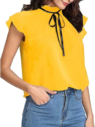 Tank Tops Damen Kolylong Frauen Elegant Spitze Armellose Blusen Mit Schleife Spitzenbluse Festlich Chiffon Oberteile Weisses Business Hemden Sommer Sleeveless Shirts Tunika T Shirt Gelb M Amazon De Schmuck