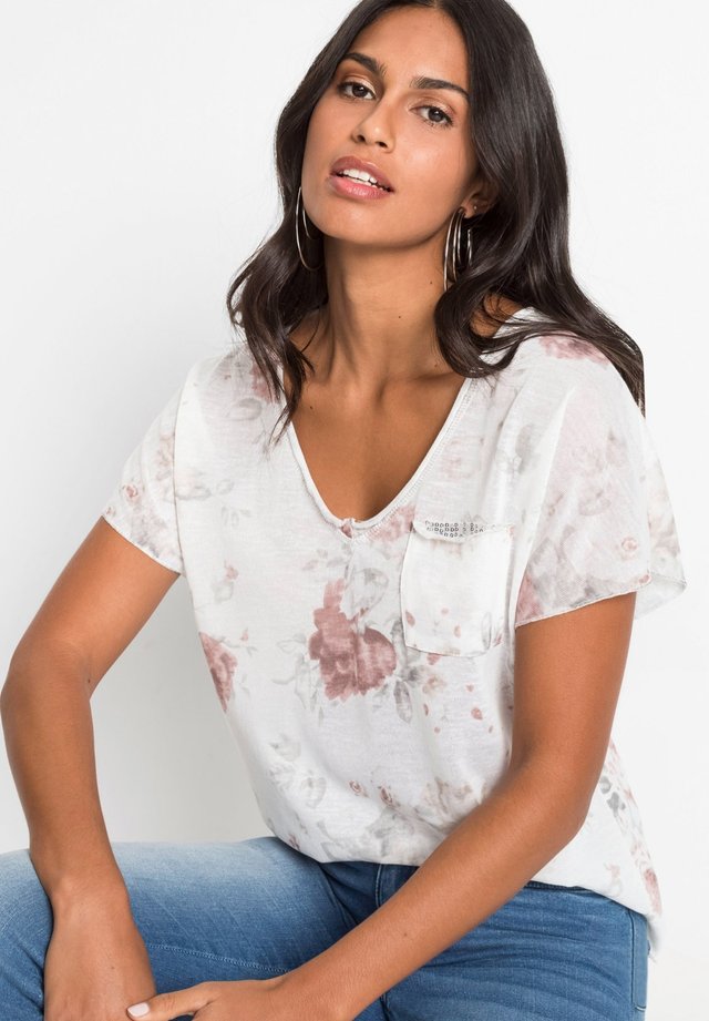 Bestia Weisses Top Fur Damen Kurzarm T Shirt Elegantes Damenoberteil Modell Adela Weiss Gemustert Bedruckt Oberteil Top Sommer Edel On Sale Fiestaso Ca