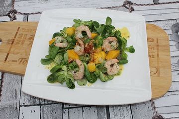 Feldsalat Mit Mango Garnelen Und Walnussen An Honig Senf Dressing Von Queen Elli Chefkoch