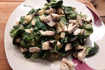 Feldsalat Mit Champignons Und Kase An Honig Senf Dressing Von Twoandahalfburger Chefkoch
