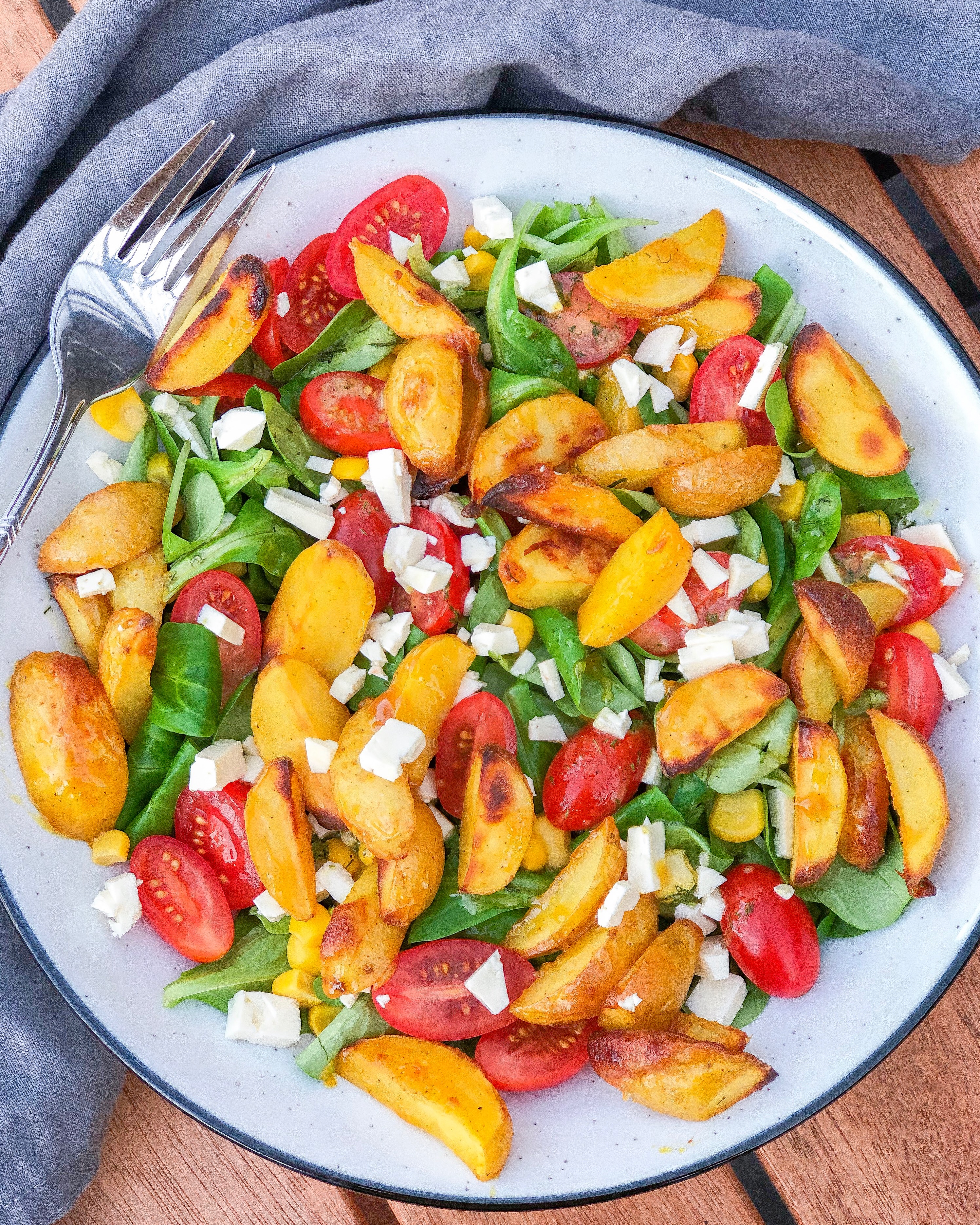 Feldsalat Mit Susskartoffeln Heidelbeeren Feta Und Honig Senf Dressing