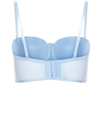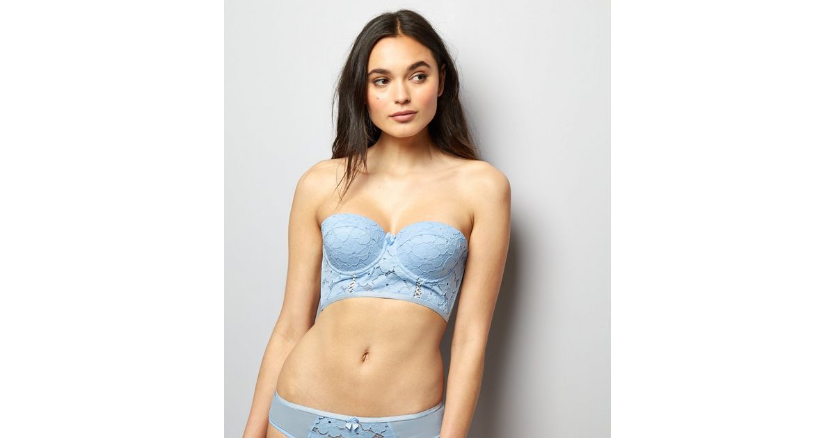 Zartblauer Tragerloser Bh Aus Floraler Spitze Mit Breitem Unterbrustband Und Schnureffekten Vorne New Look