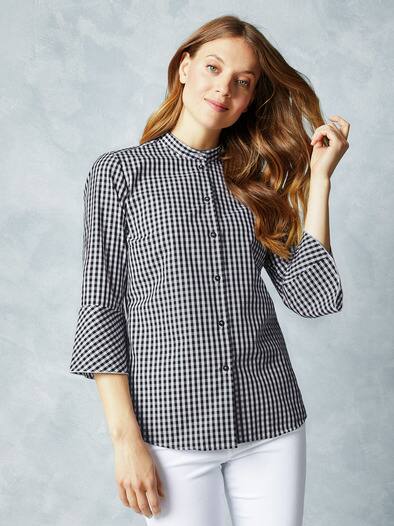 Vichykaro Bluse Volantarmel Schwarz Walbusch