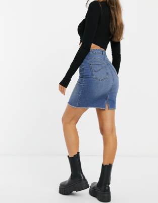 Only Eliza Jeans Minirock Mit Unverarbeitetem Saum In Verwaschenem Mittelblau Fodesep