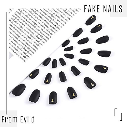 Amazon Com Evild Matte Oval Fake Nails Set Frosted Black Ballrina Artificial False Nail Full Cover Acrylic Press On Nails For Women And Girls Pack Of 24 Beauty