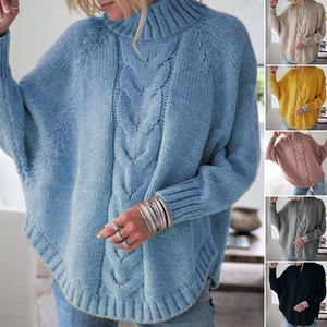 Damen Strickpullover Sweater Rollkragen Pullover Kuscheliger Jumper Strick Pulli Lose Sweatshirt Blau L Pullover Strickjacke Rollkragen Strickpullover