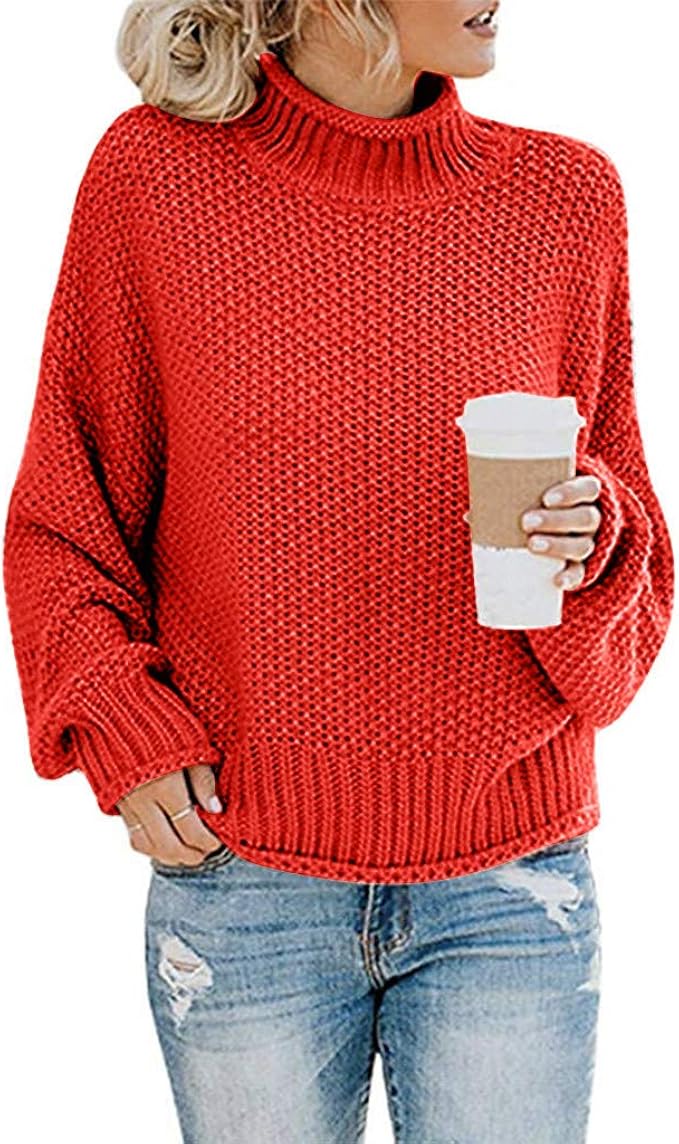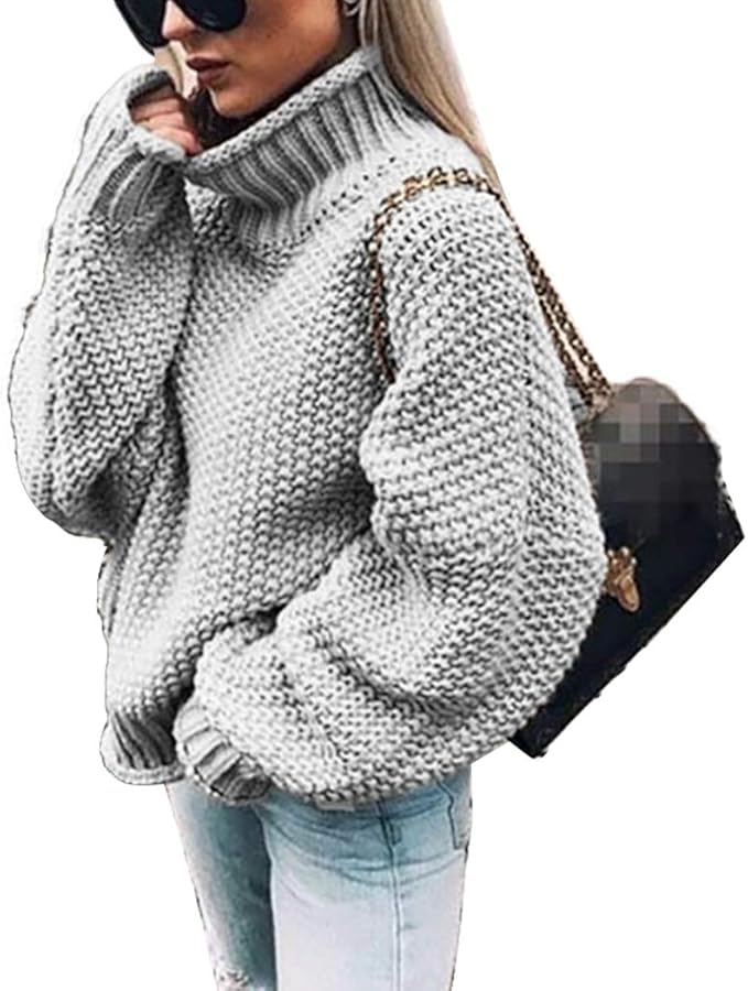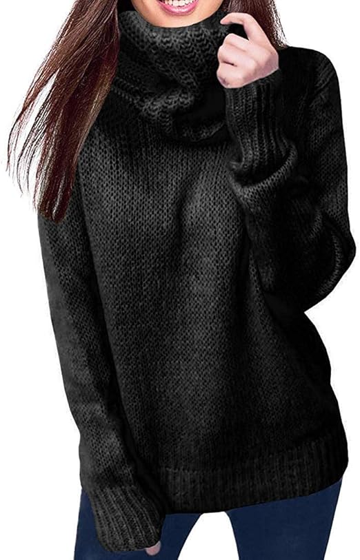 Damen Mode Langarm Einfarbige Rundhals Beilaufige Lose Sweatshirt Warme Rollkragen Strickpullover Eleganter Pullover Winter Grobstrickpullover Amazon De Bekleidung