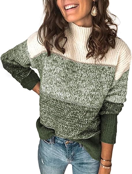 Koosufa Rollkragenpullover Streifenpullover Damen Warm Farbblock Rollkragen Strickpullover Sweatshirt Pullover Strickpulli Fur Herbst Winter Amazon De Bekleidung