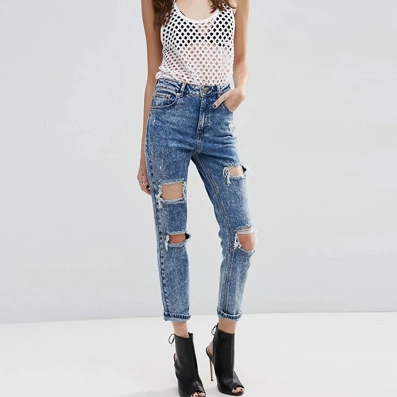 Sexy Strasse Club Zerstort Zerrissene Boyfriend Jeans Fur Frauen Schaden Grosse Loch Jeans Frau Baggy Hohe Taille Distressed Jeans Jeans Aliexpress