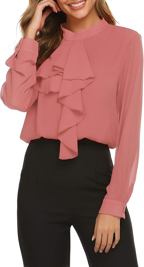 Beyove Damen Elegant Business Chiffon Bluse Schluppenshirt Stehkragen Mit Ruschen Langarmshirts Knopfen Festlich Tops Amazon De Bekleidung