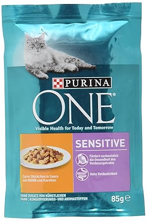 Purina ONE Sensitive Katzenfutter wurde speziell für besonders wählerische Katzen und für Katzen mit empfindlichem Magen entwickelt Purina ONE Sensitive Katzenfutter enthält spezielle Inhaltsstoffe, die auf die Bedürfnisse von besonders wählerischen Katzen oder Katzen mit empfindlichem Magen zugeschnitten sind. Purina ONE Adult im Katzenfutter Test Haben Sie keine Lust sich in jedem Lebensstadium Ihrer Katze mit dem Futter zu beschäftigen?. One Sensitive Katzenfutter mit Huhn und Karotten, 24er Pack (24 x 85 g) Perfect Fit Katzenfutter Junior 1 reich an Huhn in Gelee, 12 Beutel (12 x 85 g) Royal Canin Digest Sensitive Frischebeutel 12er Multipack, 1er Pack (1 x 1 kg Packung).