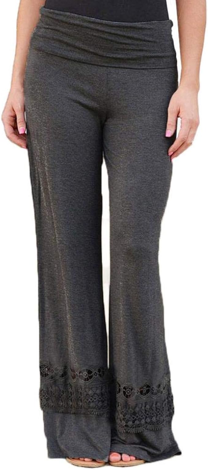 Hosen Damen Elegant Damen Frauen Fashion Casual Lose Spitze Hohle Taille Breite Beine Leggings Lange Hosen Amazon De Bekleidung